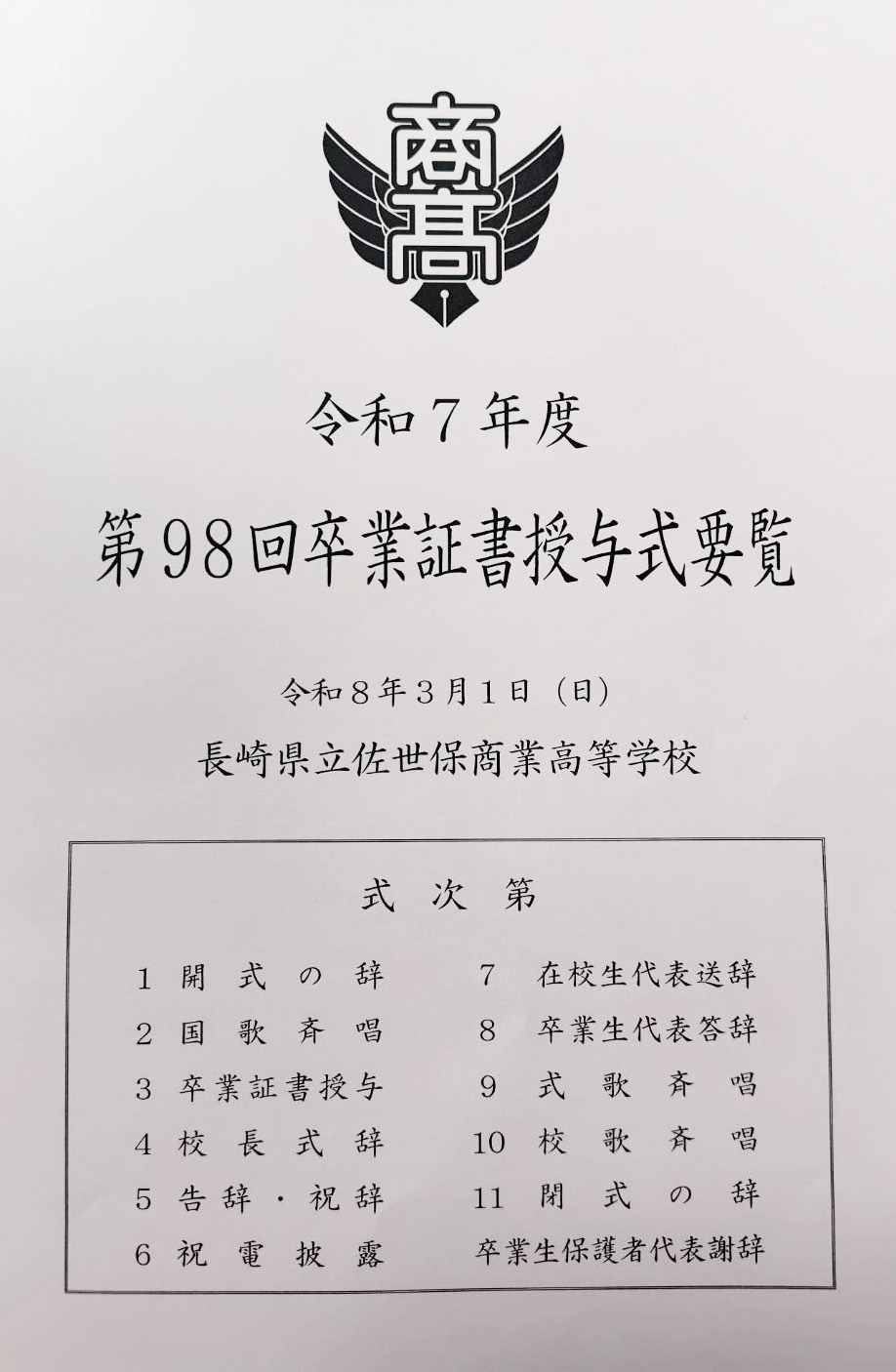 3月1日 第98回卒業式 10時から