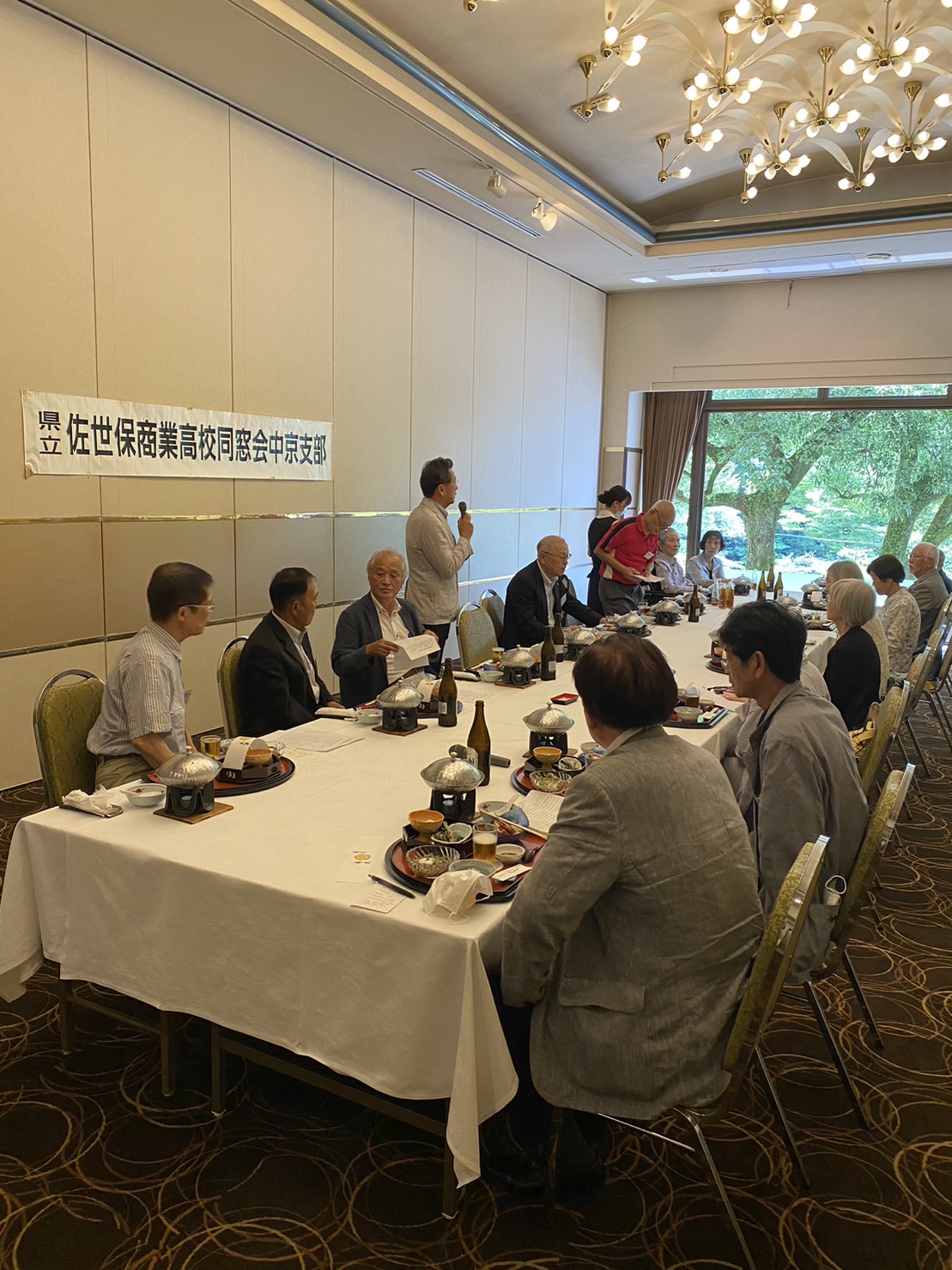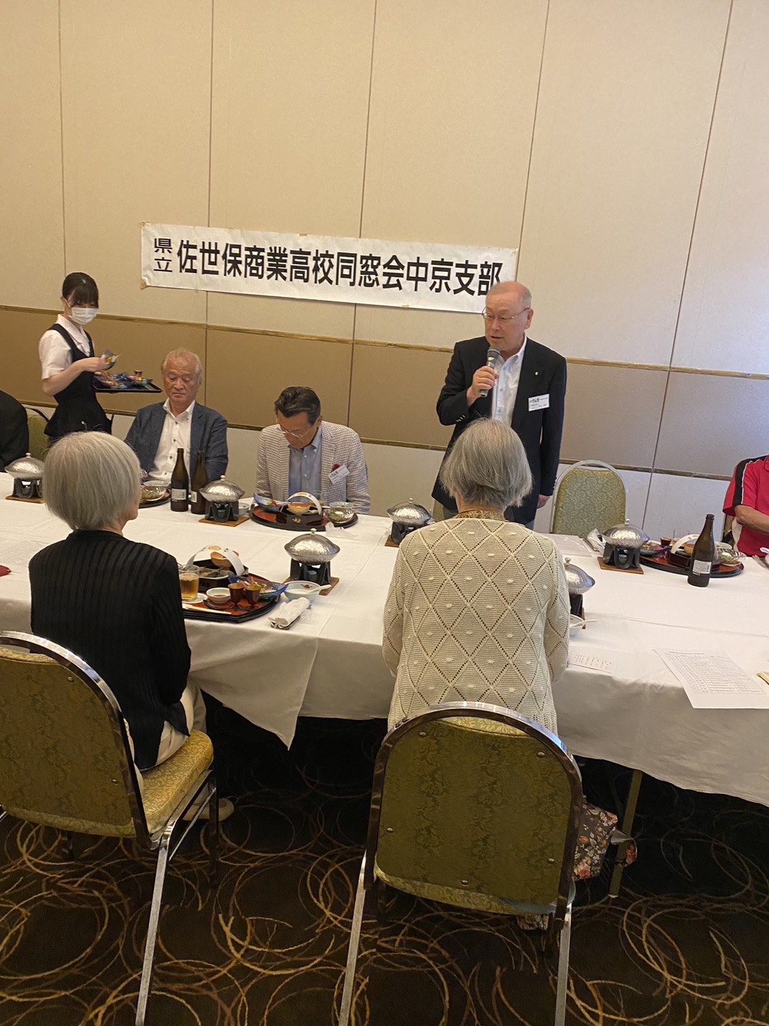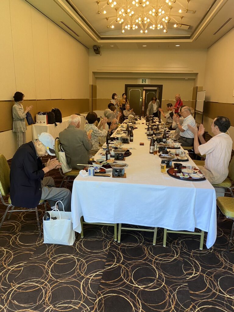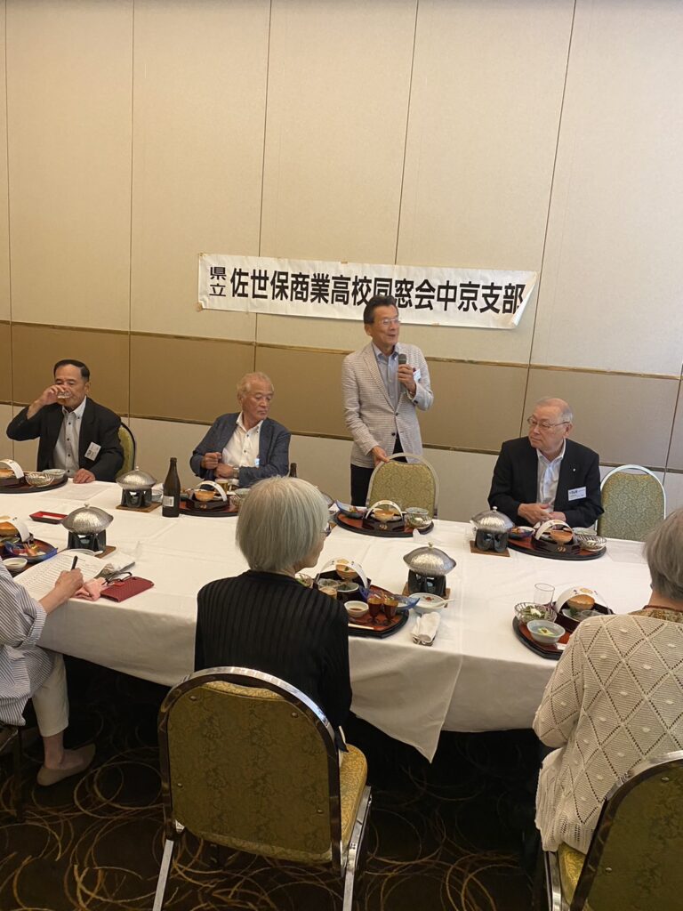 永田副会長挨拶の後 にぎやかに懇親会が始まり参加会員各自挨拶と近況報告を披露、佐世保や母校(梅田校舎)の思い出話に花が咲き話題が尽きない様子でした。